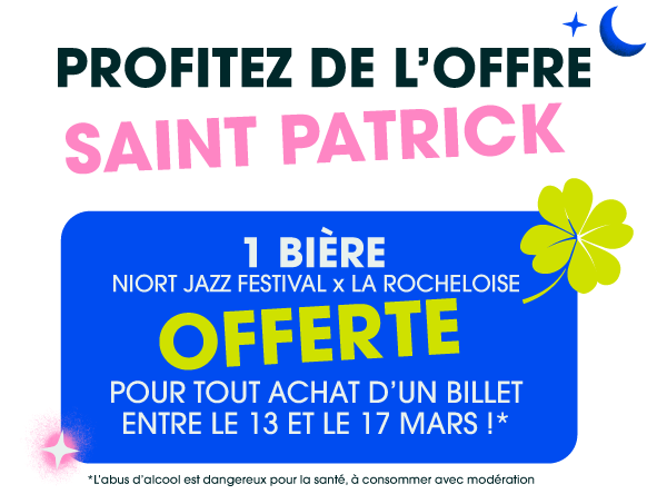 N’hésitez à consulter votre CE qui dans le cadre d’un partenariat avec le Niort Jazz Festival, peut vous proposer un tarif préférentiel. Pour plus détail, nous contacter par mail à billetteriejazzaniort@gmail.com.